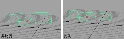 レイルに沿ってスイープしたプロファイル カーブをスケールする方法を選択するには、比例(Proportional)または非比例(Non Proportional)を選択します。