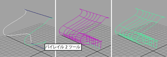 サーフェス > バイレイル(Surfaces > Birail) > バイレイル n ツール(Birail n Tool)