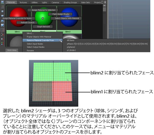 ヒント: マテリアルがオーバーライドとして使用されているかどうか、またはオーバーライドとして割り当てられているオブジェクトの名前を照会する必要がある場合にも、メニューの内容が役立ちます。
