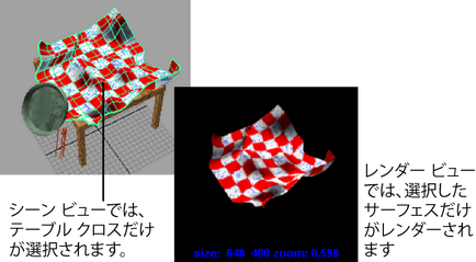 - レンダー ビュー(Render View)ウィンドウで、レンダー > 選択したオブジェクトのみをレンダー(Render > Render Selected Objects Only)を選択します。