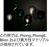 スペキュラ シェーディングだけが実行されます。スペキュラ コンポーネントの調整方法は、オブジェクトに関連付けられているマテリアルのタイプによって異なります。Phong、PhongE、Blinn、および異方性(Anisotropic)マテリアルでは、異なるスペキュラ効果が生成されます。Phong マテリアルでは、スペキュラ パスは余弦の累乗とスペキュラ カラーを使用して調整することができます。