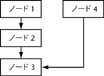 Node 2 と Node 4 は兄弟ではなく、それぞれ Node 3 をインスタンス化しています。参照が階層を循環しないので、より複雑な階層を作成することもできます。参照が階層をサイクルすると、DAG の非サイクル性が崩れます(DAG が有向非サイクルグラフであることに注意してください)。