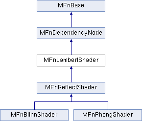 Inheritance diagram for MFnLambertShader:Public Member Functions | |