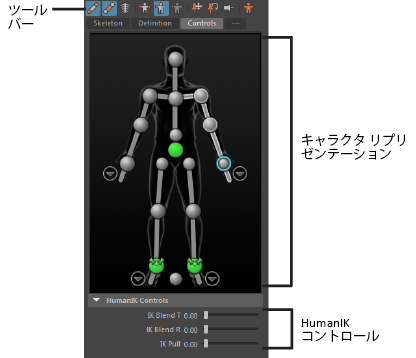 これらのアイコンを使用し、FK エフェクタ、IK エフェクタ、スケルトンの表示を切り替えることができます。