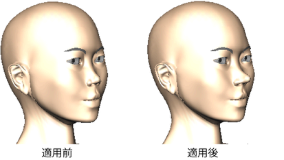 この例では、ソフト修正(Soft Modification)デフォーマを使用して、キャラクタのフェースにある鼻を対称的に修正する方法を示します。