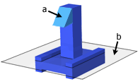 この領域にはスライドが必要です。この領域は分離する必要があるので、スライドは通常、コア部分やキャビティ部分に対して垂直方向に移動します。下図では、a の部分がアンダーカット、b の部分がパーティング平面になります。