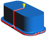 主要フロー パスは必ずではありませんが、通常、最長のフロー パスになります。下図では、コーンが射出位置を、X が充填末端を示しています。