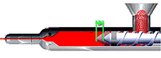 スクリューをノズルから引き離して、射出ノズルから樹脂を除去するための手法で、