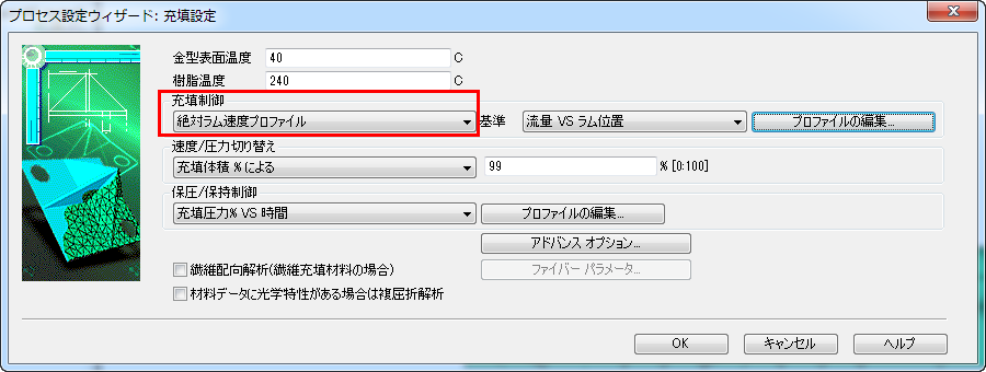 ()をクリックして、ラム速度プロファイルを含む充填制御オプションを選択します。