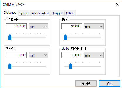 [プローブ パラメーター]アイテムの設定によって指定値が変更されない限り、検査シーケンスの実行時に計測デバイスは指定値を使用します。