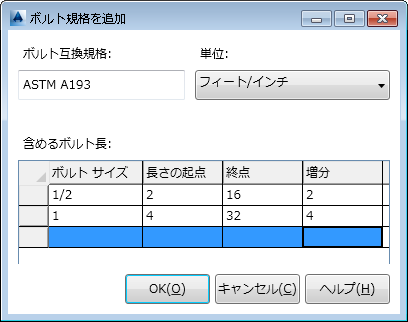 [ボルト規格を追加]ダイアログ ボックス