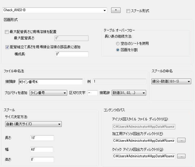 配管アイソメ図およびスプール図面のアイソメ図スタイルを作成し、設定します。アイソメ図面が格納される場所のパスとフォルダを設定します。