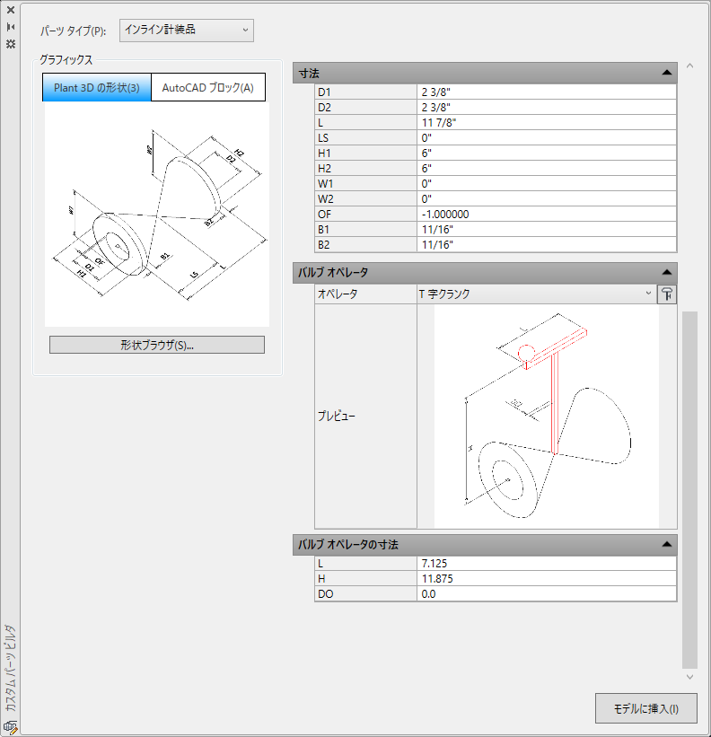[Plant 3D 形状ブラウザ]ダイアログ ボックスが表示されます。