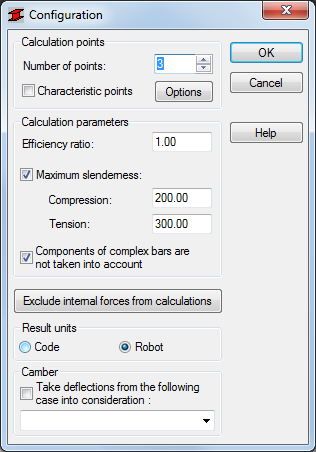 If you selected the Components of Complex Bars are not taken into account option, Robot ignores components of complex bars during calculations of these bars.