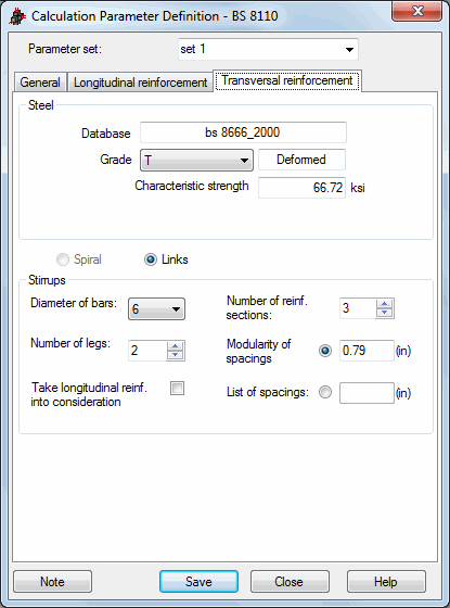 The Transversal reinforcement tab of the Definition of calculation parameters dialog box for BS Code:
