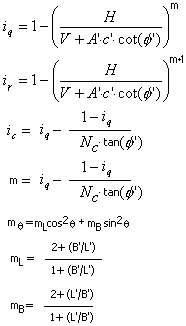 Since it is not allowed to use soils of friction angle φ = 0.0 degrees in the module, only the first of the formulas by Hansen is applied. The final formula for calculation of allowable stresses for ACI \ BS 8004:1986 \ CSA is: