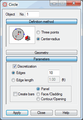 Create Bars option is available only when Discretization is selected. When selected, the circle consists of bar elements (individual parts of a circle will be bars).