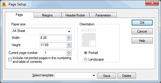 Define the Paper Size, Orientation and the Current Page Number in this dialog.