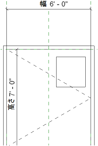 ラベル付きの幅寸法を持つ防火扉に長方形の窓を追加したものの、窓の寸法設定はまだ行われていないという事例を想定してみます。
