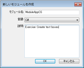 - [マクロ マネージャ]ダイアログの[作成]セクションで、[モジュール]をクリックします。