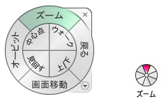 フル ナビゲーション ホイール(大きいホイールとミニ ホイール)には、オブジェクトの表示とビルディング ツアーの両方で使用する共通の 3D ナビゲーション ツールが含まれます。