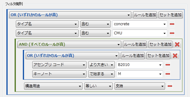 フィルタ規則にネストしている複数のレベルが含まれる場合、該当する規則セットに対して[セットを追加]をクリックするようにしてください。
