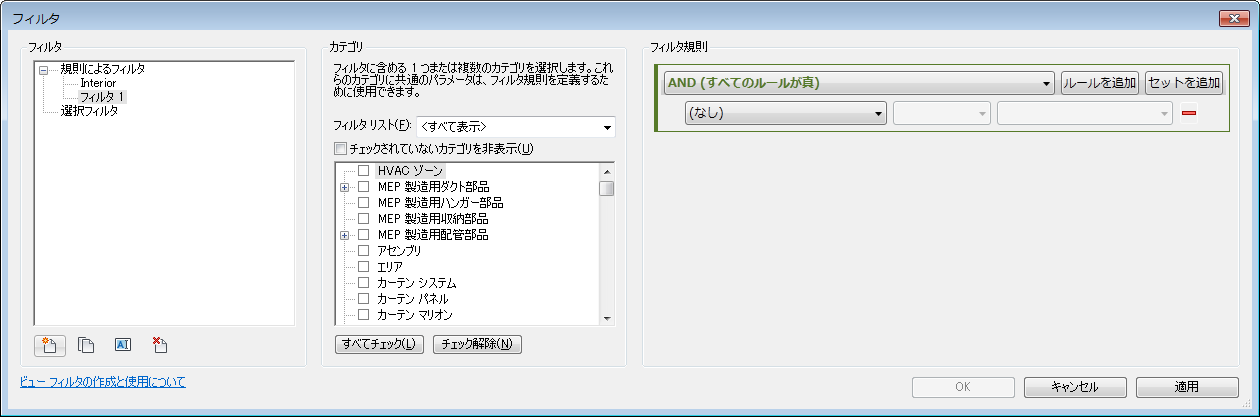 カテゴリとパラメータの値に基づいて要素を識別するビュー フィルタを作成します。