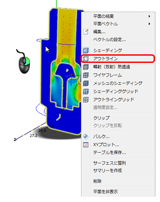 3. ベクトルを見やすくするには、平面を右クリックし、[アウトライン]を選択します。