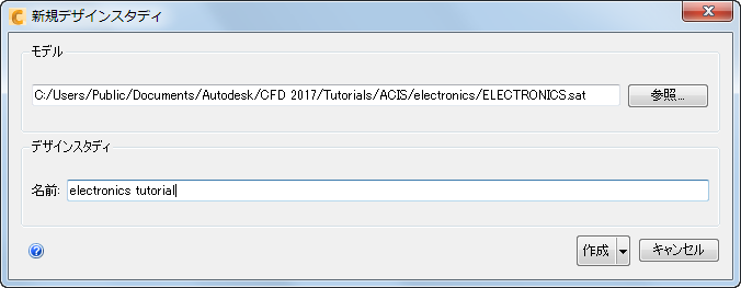 [ファイル マネージャ]ダイアログで、ユーザー¥パブリック¥パブリックのドキュメント¥Autodesk¥CFD 2019¥Tutorials¥<ファイルの種類>¥electronics にナビゲートします。