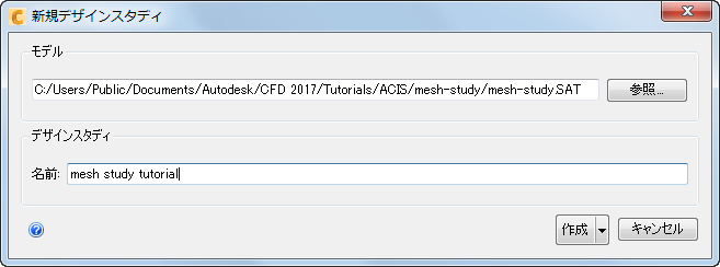 [ファイル マネージャ]ダイアログで、ユーザー¥パブリック¥パブリックのドキュメント¥Autodesk¥CFD 2019¥Tutorials¥<ファイルの種類>¥mesh-study にナビゲートします。