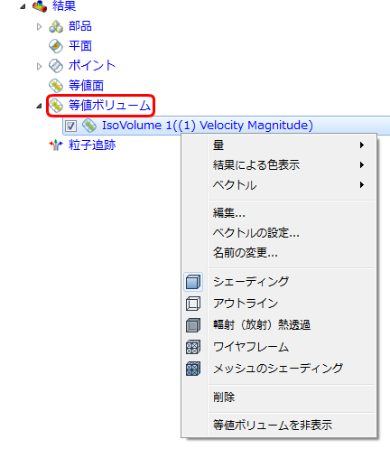 等値ボリューム ブランチのブランチ上で右クリックして、[等値ボリュームを追加]をクリックすると、新しい等値ボリュームを作成できます。