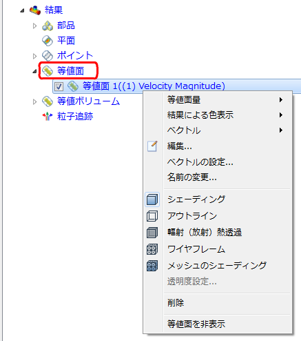 等値面ブランチのブランチ上で右クリックして、[等値面追加]をクリックすると、新しい等値面を作成できます。