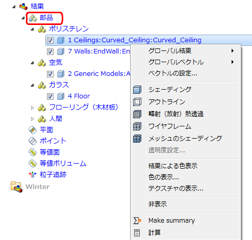 このコマンドを使用すると、部品上に表示された結果を変更したり、部品の外観を変更したり、サマリー部品として部品を割り当てたり、さらには、パーツ ツールを使用して温度などの部品ベースの結果を計算したりできます。