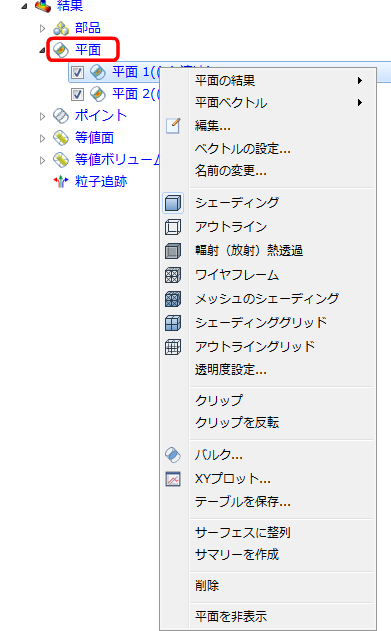 平面ブランチでは、ブランチ上で右クリックし、[平面追加]をクリックして、新しい結果平面を作成できます。
