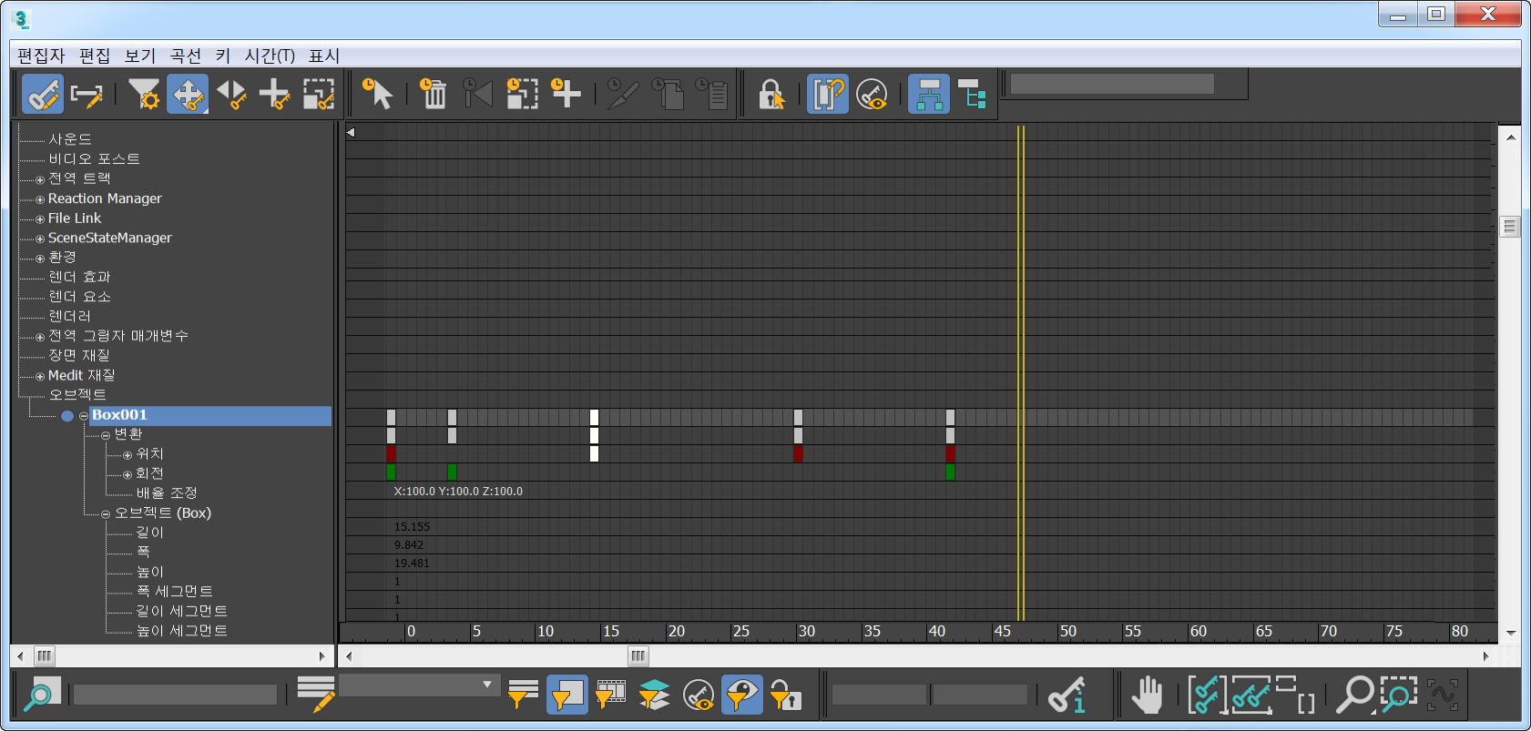 트랙 뷰를 통해 다양한 장면을 관리하고 애니메이션 제어 작업을 수행할 수 있습니다. 트랙 뷰를 사용하여 다음 작업을 수행합니다.