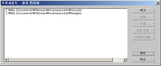 - 프로사운드에서 샘플을 찾는 디스크 위치를 관리할 수 있습니다. 이 기능은 샘플이 다른 디렉토리에 있을 수 있는 또 다른 시스템에서 만든 MAX 장면을 로드할 때 유용합니다. 경로 관리자에 디렉토리를 추가하면 프로사운드가 더 많은 위치에서 샘플을 찾습니다. 예를 들어 어떤 사람이