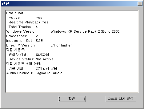 프로사운드 대화상자는 모달리스로, 프로그램의 다른 부분을 사용하는 동안 열어둘 수 있습니다.
