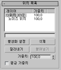 설정되면 리스트에 있는 모든 제어기 가중치 값의 평균을 구합니다. 위치 리스트 및 배율 조정 리스트 제어기에만 사용할 수 있습니다. 기본적으로 해제되어 있습니다.