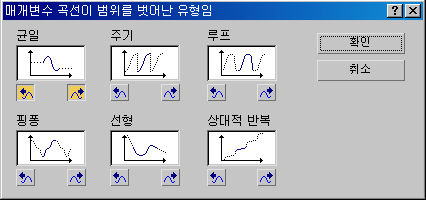 매개변수 곡선이 범위를 벗어난 유형임 대화상자에서는 애니메이션을 반복할 4가지 방법 및 선형 값을 적용할 2가지 방법을 제공합니다.