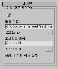 외부 참조 제어기를 제거하려면 외부 참조 엔티티 리스트의 항목을 마우스 오른쪽 버튼으로 클릭한 다음 상황별 메뉴에서 장면에 병합을 선택하거나, 오브젝트에 새 변환 제어기를 할당합니다.