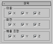 축을 켜면 해당 축에 대한 변환 정보가 상위에서 차일드으로 전달되고, 축을 끄면 해당 축의 변형 정보가 차일드에서 무시됩니다.