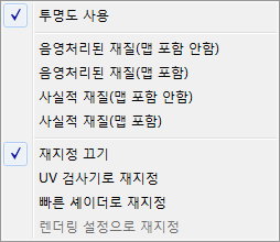 - 재질 표시 옵션이 포함된 하위 메뉴를 표시합니다.