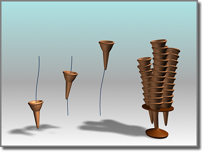 경로를 따라 애니메이션된 아이스크림 콘을 사용하여 스냅샷에서 원뿔 스택을 만듭니다.