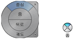 오브젝트 보기 휠은 일반적인 3D 탐색에 사용되며 궤도 3D 탐색 도구를 포함합니다. 오브젝트 보기 휠을 사용하여 외부에서 3D 오브젝트를 검사할 수 있습니다.