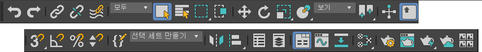 주 도구 모음을 사용하여 3ds Max에서 가장 일반적인 작업에 대한 도구 및 대화상자에 신속하게 접근할 수 있습니다.