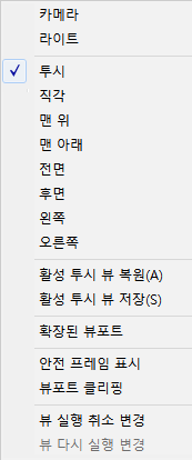다음 메뉴 항목을 통해 선택한 뷰포트에서 현재 관점을 지정할 수 있습니다.