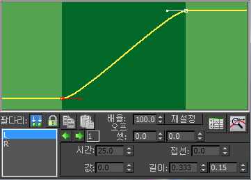 Step모양 제어기는 FootPlatform이 허공에서 이동할 때의 속도를 제어합니다. 즉, FootPlatform 모션의 천천히 들어옴 및 천천히 나감을 제어합니다.