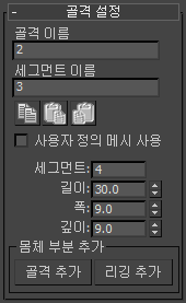 특정 골격이나 세그먼트의 설정 매개변수에 액세스하려면 뷰포트에서 해당 항목을 선택합니다.