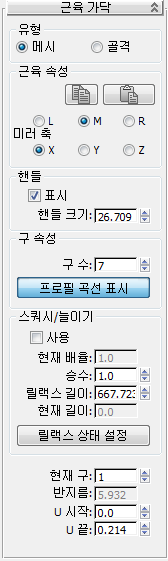 - 근육 가닥을 구성하는 구의 수입니다. 이 값이 클수록 근육의 해상도가 높아집니다.