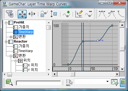 시간 왜곡 곡선이 표시된 곡선 편집기